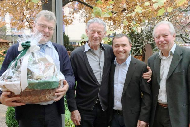 Der TV Passau gratuliert seinem Ehrenvorsitzenden Adolf Hiendl.